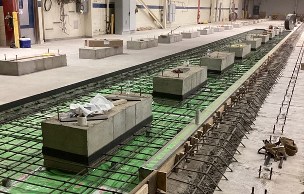 Westrock Coffee’s new facility was a renovation of an existing building that had limited access to the site. This presented coordination challenges with many areas only having one entrance and exit point, making it difficult to pump concrete over long distances. Bass Concrete performed the following concrete scope: footings, pedestals, walls, slab on grade, extensive grouting, rail foundations, interior curbs, sidewalks, curb and gutter, and paving.